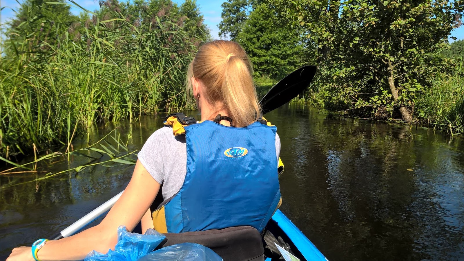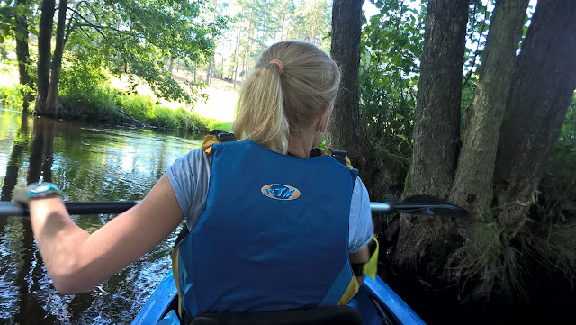 Moje ręce bolały, bo nie były przygotowane na taki wysiłek. Zresztą te moje "witki" już takie są, niewprawione w bojach ;) Wiosłowałam jednak ile sił. Dawałam z siebie wszystko, a i tak wiele razy nie udało nam się wyrobić na zakręcie i tak przez całą trasę :P Gdy już nam się wydawało, że opanowaliśmy kajak, następowało wielkie jebs! które weryfikowało nasze wyobrażenia. Kilka razy ugrzęźliśmy na podwodnych korzeniach, kłodach, z których wydostanie się nie było wcale proste.